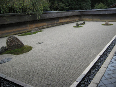 The first place we visited was a Zen Buddhist Shrine named Ryoanji Temple. The temple's name is famous for its karesansui (dry landscape) rock garden which is associated with Zen Buddhism. The “garden” has raked gravel and fifteen moss-covered boulders, which arranged, so that only fourteen of the boulders are visible at one time. Only people who have attained enlightenment would one be able to see the fifteenth rock. One of the best things about the shrine is the pond. Although it drizzled off and on all day long, I think the light rain added to the enjoyment of the places we visited today.